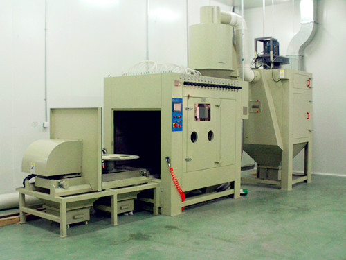 三 ?設備描述 1噴砂室體 2砂料的回收 3?砂料的分選 4噴咀裝置 5輸送系統 6除塵器 7控制系統 8安全裝置 四 噴砂室 噴砂室體能有效防止砂料及粉塵外泄,噴砂室體由冷軋鋼板焊接而成,外表面噴塑,內表面貼耐磨膠皮防護,可以有效的保護室內的使用壽命。
